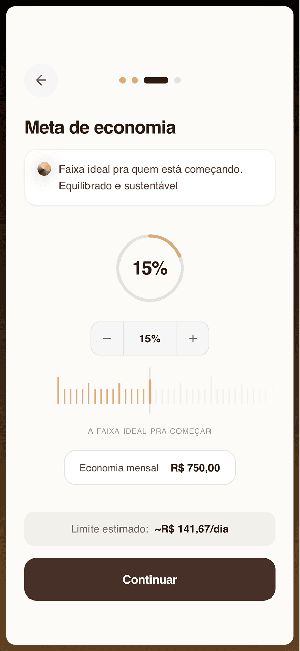 Escolha uma meta de economia mensal realista com seu dia a dia