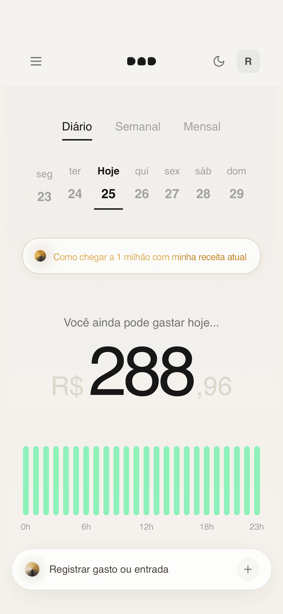 O Gasto Diário calcula um limite por dia e ajusta conforme você gasta durante o mês. Você gasta menos hoje,